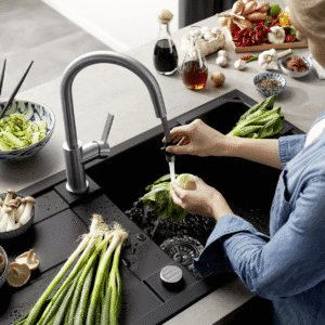 Lavamanët e Blanco bëhen nga materiale premium si granit Silgranit®, inoksi rezistent ose porcelani i përpunuar me kujdes, që i bëjnë të qëndrueshëm, higjienikë dhe shumë të lehtë për mirëmbajtje.