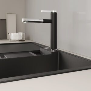 Lavamanët e Blanco bëhen nga materiale premium si granit Silgranit®, inoksi rezistent ose porcelani i përpunuar me kujdes, që i bëjnë të qëndrueshëm, higjienikë dhe shumë të lehtë për mirëmbajtje.