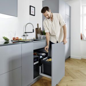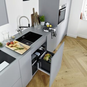 Sistemi SELECT përshtatet në mënyrë fleksibël në kuzhinën tuaj, pavarësisht nga gjerësia e dollapit për të cilin kërkoni një sistem mbeturinash ose sa kova ju nevojiten. Sistemet e mbetjeve gjithashtu mund të instalohen shpejt dhe lehtë – pa matje, shënjuar ose shpime paraprake.