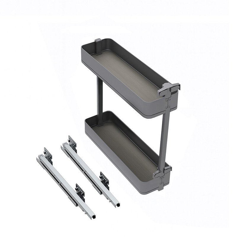Raft tërheqës për shishe Harmony, me mekanizëm soft close, i projektuar për organizim elegant dhe funksional të kuzhinës. I përshtatshëm për modul me gjerësi 200 mm dhe lartësi 700 mm, ky raft ofron shfrytëzim optimal të hapësirës së ngushtë. I ndërtuar nga kombinimi i çelikut dhe drurit, siguron qëndrueshmëri të lartë dhe pamje premium. Ngjyra gri antracit i jep një stil modern dhe të sofistikuar, duke u integruar lehtësisht në kuzhina bashkëkohore. Mekanizmi soft close garanton mbyllje të butë dhe të heshtur për rehati maksimale në përdorim të përditshëm.