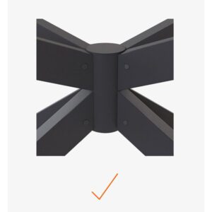 Baza metalike BXS vjen e çmontuar për transport të lehtë, por montohet shumë thjesht. Ajo ka përfundim me veshje pluhur (powder-coated), pa vida apo saldime të dukshme, dhe dorëzohet në paketim minimal dhe inteligjent nga VOGA.