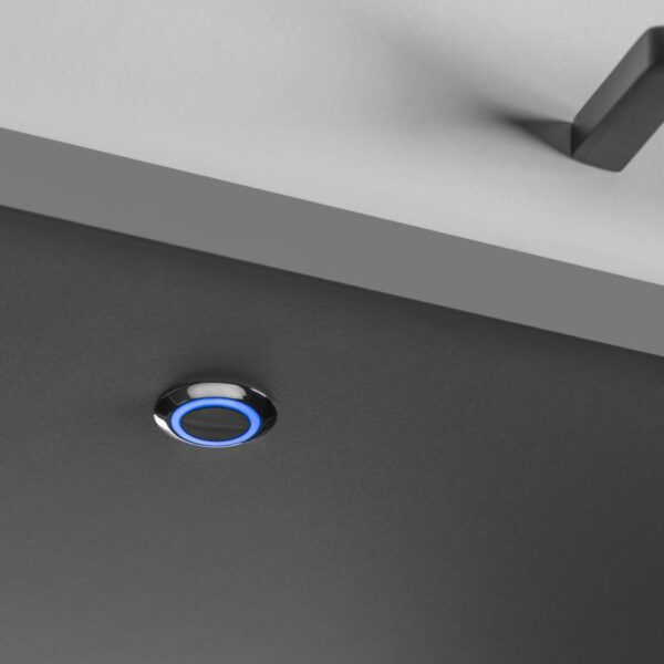 Duhet ta keni parasysh se në mobiliet e bëra nga pllaka me llak me shkëlqim të lartë, elementet e tjera duhet të kenë një përfundim të ngjashëm. Përfundimi universal në krom do të përshtatet me çdo ngjyrë. Ndërprerësi do të jetë i lehtë për t’u gjetur natën falë ndriçimit të butë blu.