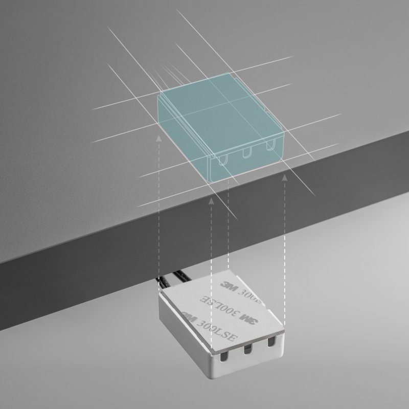 Ndërprerësi vendoset nën planin e punës me trashësi maksimale 40 mm. Ai reagon ndaj goditjes së shkaktuar nga prekja e lehtë e sipërfaqes së planit në zonën ku ndodhet pajisja. Një zgjidhje shumë e zgjuar për ata që preferojnë minimalizmin.