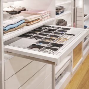 Organizuesi është i disponueshëm në dy variante ngjyrash dhe katër madhësi, me mundësinë e rregullimit të gjerësisë sipas trupit. Teknologjia e mbylljes së qetë (soft-close) dhe nxjerrja e plotë e bëjnë sirtarin të lehtë për përdorim të përditshëm.