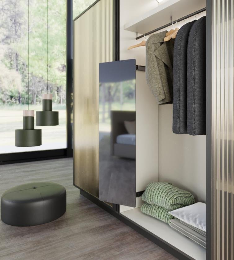 Pasqyrë për garderoba, e dizajnuar për funksionalitet maksimal dhe komoditet në përdorim të përditshëm. Falë mekanizmit tërheqës, pasqyra mund të nxirret lehtësisht jashtë garderobës dhe të kthehet sërish brenda kur nuk përdoret, duke kursyer hapësirë. Ajo është e lëvizshme dhe e kthyeshme në të dy anët, duke mundësuar rregullim sipas këndit të dëshiruar për një pamje sa më të qartë dhe praktike. Mekanizmi rrotullues siguron përdorim të lehtë dhe fleksibil, ndërsa dizajni i saj modern e bën një shtesë ideale për çdo garderobë bashkëkohore, duke kombinuar estetikën me funksionalitetin.