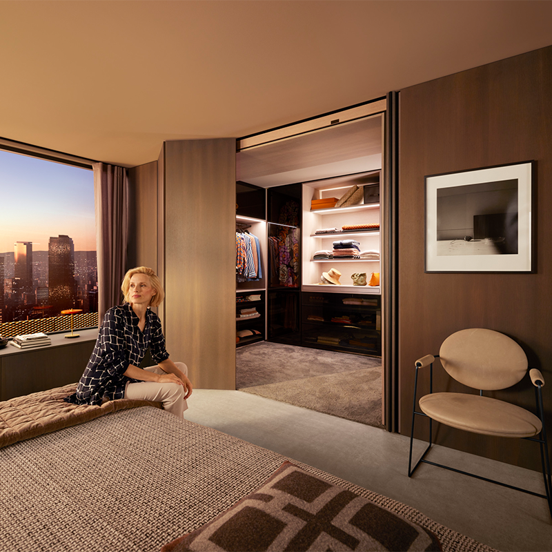 REVEGO është zgjidhje ideale për dizajn modern, sepse kur është i mbyllur, frontet krijojnë një sipërfaqe të vazhdueshme dhe uniforme, pa mekanizma të dukshëm. Sistemi është i përshtatshëm si për dyer të vetme ashtu edhe për dyer të dyfishta, duke ofruar fleksibilitet të madh në planifikim dhe dizajnim.