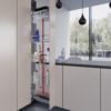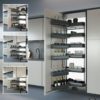 Mekanizëm i kthyeshëm për bazën e kuzhinës me nxjerrje totale. Me metal të lyer me kosha komplete në alumin të kuti dhe të lyer. E disponueshme në disa përfundime.