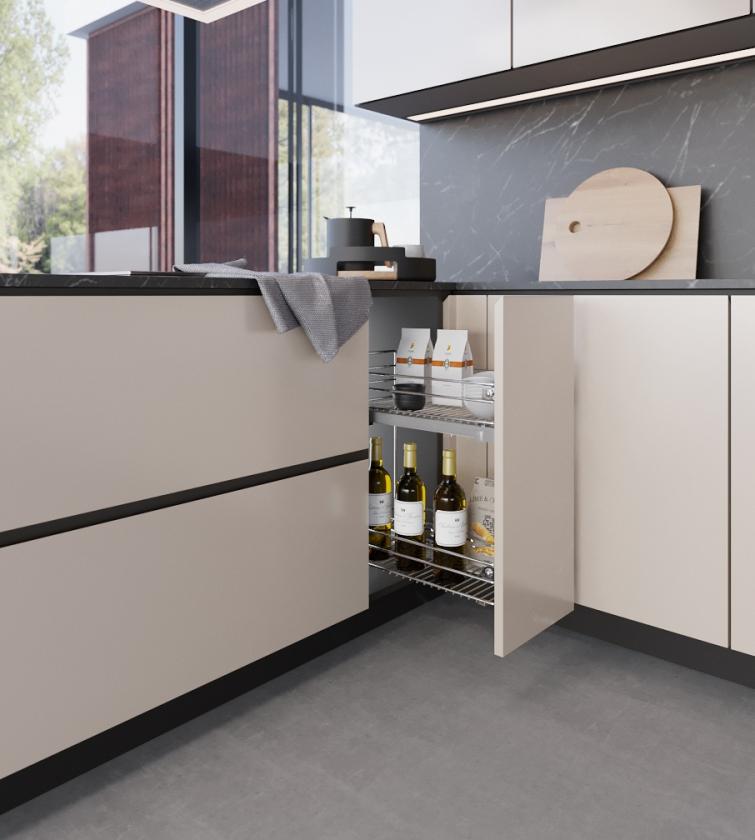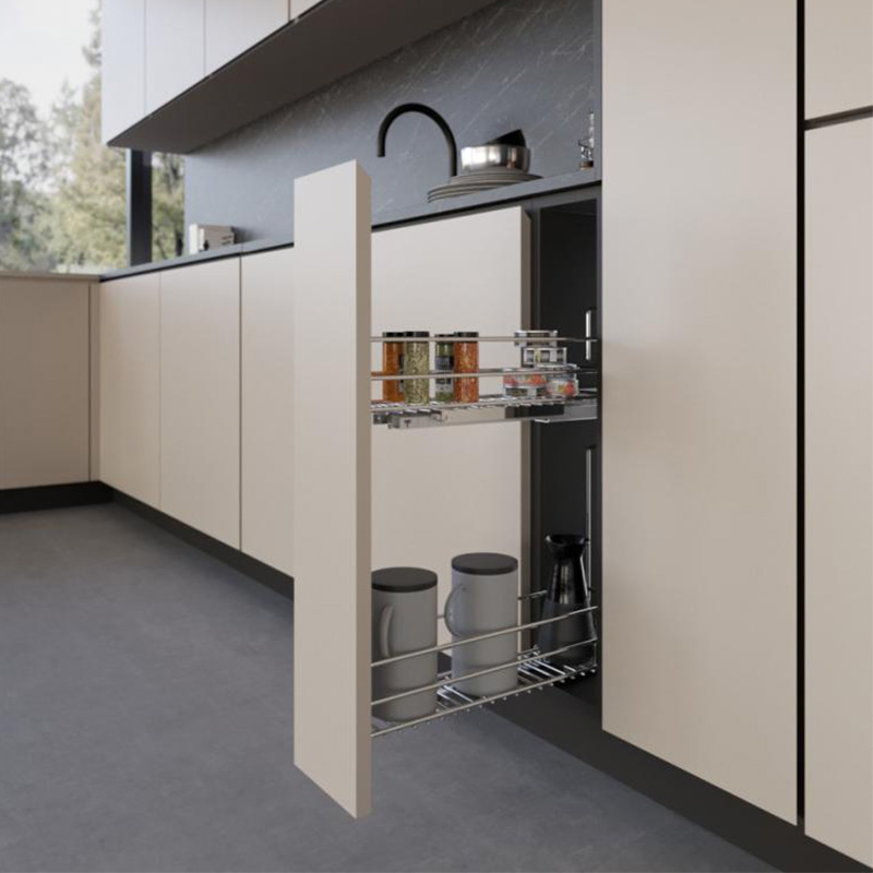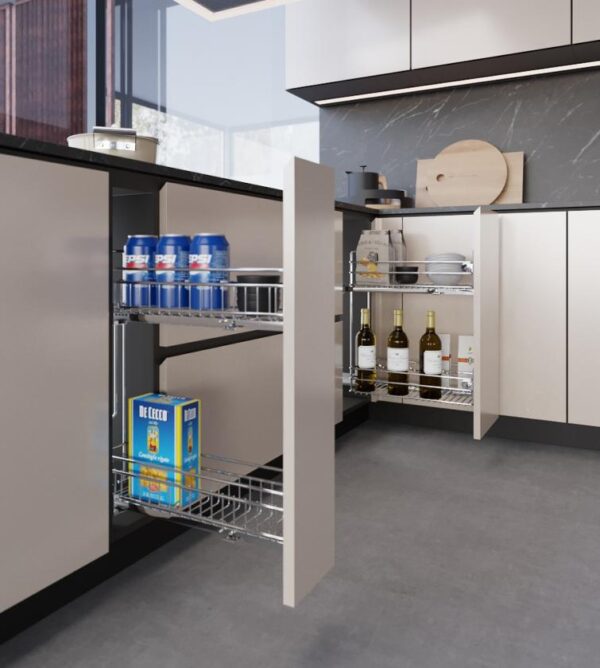 Depo me dy rafte tërheqëse për dollap bazë kuzhine.