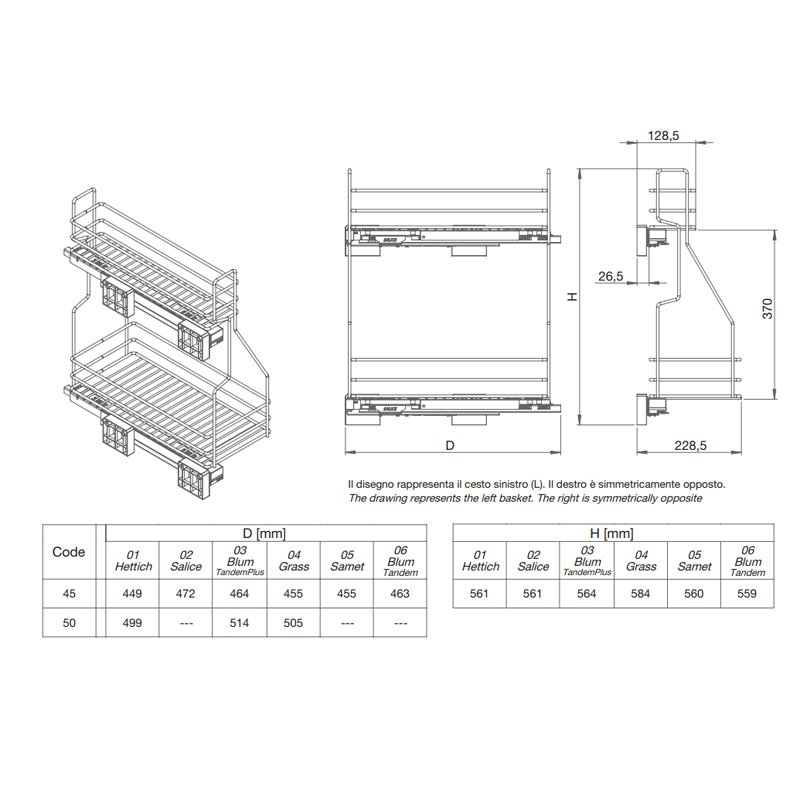 Thellësia standarde 45 cm (50 cm në kërkesë)
